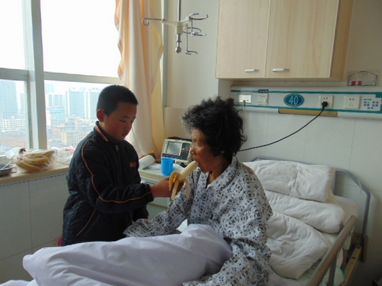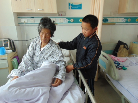 醫(yī)院的醫(yī)生護士見錢剛小小年紀就如此懂事,都十分感動。即便有遠方親戚來陪護,錢剛也是不離奶奶左右,奶奶輸液的時候,他就拉著奶奶的手,生怕她醒來找不到自己。醫(yī)生過去查房的時候經(jīng)常見他給奶奶梳梳頭,擦擦臉,給奶奶蓋蓋被子,片刻不停歇。