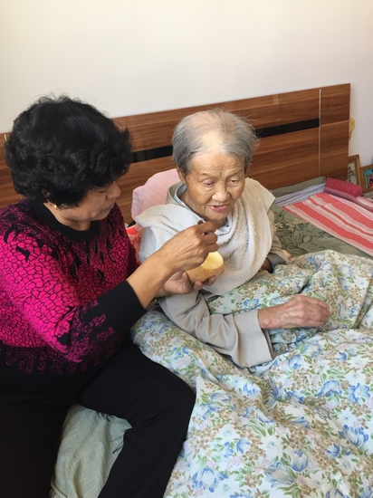 23年的臥床對一個高齡老人來說也是一種精神煎熬。為了打消老人的顧慮,鼓勵婆婆積極的面對生活,隋媛珍閑下來就會坐在老人床邊陪她說說話,聊聊天,讓老人好好地活著,看孫子結(jié)婚,抱重孫子,用質(zhì)樸的話語給老人精神支柱,心存生活的希望。