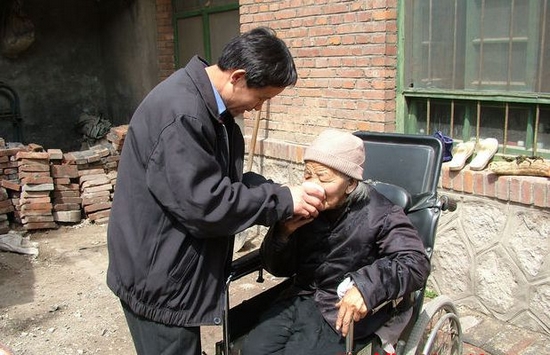 女婿勝親兒 俗話說,“一個女婿半個兒!碧圃龉膺@“半個兒”對岳父母的照料體貼周到,說無微不至一點也不過。鄰居們都說,即使是親生兒子,能像他這樣20多年如一日地悉心照料兩個臥床不起的老人,也不多見。每當天氣晴好的日子,唐增光就把岳父攙到院子里,再去把岳母抱出來,讓兩位常年臥床的老人也能享受到陽光的溫暖。陪著他們聊聊天、談談心,想方設法地讓老人開心。為了讓老人換換環(huán)境,舒緩一下不能走動帶來的郁悶情緒,唐增光和妻子省吃儉用,花了近千元為兩位老人買了一輛輪椅,每天輪流推著兩位老人到戶外走走看看,呼吸一下新鮮空氣。