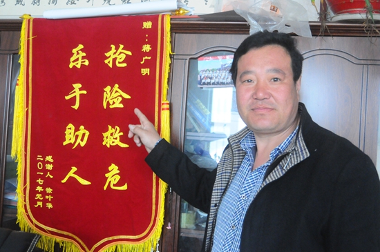 2月17日,徐葉華夫婦從淄博趕到廣饒縣大碼頭鎮(zhèn)蔣官村,將一面寫有“搶險(xiǎn)救危,樂于助人”的錦旗送到蔣廣明家中!盀榱司仍蹅,人家的車都被撞報(bào)廢了,心里挺過意不去的!毙烊~華告訴記者,出院以后,自己和妻子一直打聽救命恩人的下落,輾轉(zhuǎn)找到了蔣廣明的聯(lián)系方式,“表達(dá)一下咱感謝的心意!