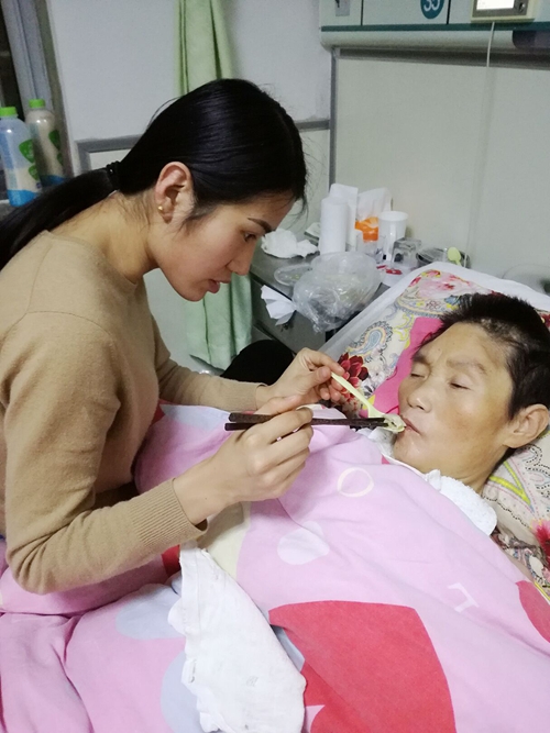 在隋新和妹妹的悉心照顧下,母親逐漸有了意識,但仍舊不會說話,不會吃飯。一開始隋新的媽媽不會張嘴吃飯,隋新就用攪拌機把飯打碎,再用小勺一點一點地喂給她,幾乎每頓飯都要吃兩個多小時。兩年時間,隋新的母親學(xué)會了吃飯、學(xué)會了說話,也可以在家人的攙扶下慢慢的走路?烧l知老天又對她們開了一個巨大的“玩笑”,開顱手術(shù)的后遺癥又讓她們的母親再次住進了醫(yī)院的重癥病房。雖然治療后再次出院,但母親的病情卻加重了。