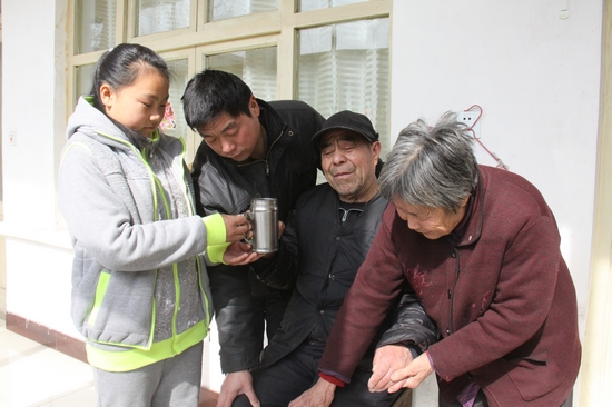 郭建的父親患有高血壓,常年吃藥,不能干重活;母親一只眼睛失明,手腳也不是很利落;岳父更是由于腦血栓后遺癥,只能靠拐杖勉強(qiáng)走路。平日里,只要不上夜班,郭建每天早上5點(diǎn)左右就要起床,照顧孩子和老人們起床、吃飯。岳父腿腳不便,常年在自己的房間里生活,怕老人磕碰著,一天三頓,郭建或其父母、孩子把飯盛好后,首先送到老人屋里;怕岳父悶得慌,郭建就買來收音機(jī),調(diào)到岳父喜歡的頻道;平時(shí)上廁所,怕岳父不小心跌倒,他在家的時(shí)候,就扶著老人去,上班的時(shí)候,就交代好自己的父母,多往岳父屋里跑跑,看他有什么需要。老人逢人就說:“俺這女婿可好了,就是親兒子,也不一定能這么盡心。要不是他,我活不到現(xiàn)在。