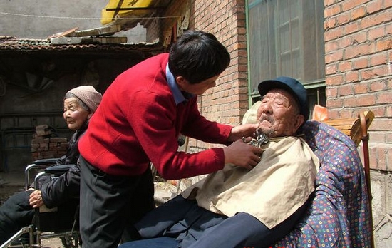 女婿勝親兒 俗話說(shuō),“一個(gè)女婿半個(gè)兒!碧圃龉膺@“半個(gè)兒”對(duì)岳父母的照料體貼周到,說(shuō)無(wú)微不至一點(diǎn)也不過(guò)。鄰居們都說(shuō),即使是親生兒子,能像他這樣20多年如一日地悉心照料兩個(gè)臥床不起的老人,也不多見(jiàn)。每當(dāng)天氣晴好的日子,唐增光就把岳父攙到院子里,再去把岳母抱出來(lái),讓兩位常年臥床的老人也能享受到陽(yáng)光的溫暖。陪著他們聊聊天、談?wù)勑模敕皆O(shè)法地讓老人開(kāi)心。為了讓老人換換環(huán)境,舒緩一下不能走動(dòng)帶來(lái)的郁悶情緒,唐增光和妻子省吃儉用,花了近千元為兩位老人買了一輛輪椅,每天輪流推著兩位老人到戶外走走看看,呼吸一下新鮮空氣。