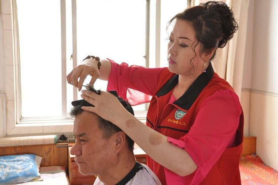 外來妹免費為敬老院老人理發(fā)