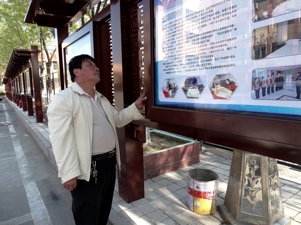 李志遠(yuǎn)查看不久前安裝的新宣傳欄