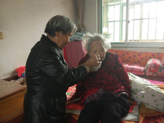 有段時(shí)間,婆婆因?yàn)槲赋鲅龥](méi)有多大力氣吃東西,劉貴清就把食物嚼碎了再喂給婆婆吃,看著婆婆一點(diǎn)點(diǎn)的吃下東西,劉貴清懸著的心終于落下了。