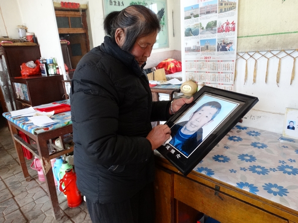 崔風(fēng)花擦拭老伴的遺像