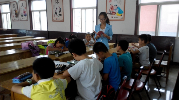 說干就干,她利用起村西面的二樓會議室,整理出農家書屋,自掏腰包購買了學習用品,還聯(lián)系村里的木工新打了6個大書櫥,將適合學生閱讀的書籍分類造冊,并爭取鎮(zhèn)殘聯(lián)提供了300余份書簽,還把選舉時用的一塊木質黑板抬進了教室。忙活了一周,那天她細心地用彩筆寫上了“歡迎新同學”五個大字。懷著激動緊張的心情,2013年9月7日增福小課堂正式開課。她也迎來了社區(qū)7名小學生。萬事開頭難,教學器材缺乏,用自己的筆記本電腦給學生放映24孝德動畫視頻,帶領他們借閱書籍。一周后孩子們呼朋引伴,小課堂一下子就來了36名學生,她也有了“朱老師”這個新稱呼。孩子們的學習有了固定場所,有了“免費老師”的輔導,讓遠在外地打工的鄉(xiāng)村家長們更加放心滿意。
