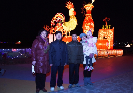 元宵佳節(jié),劉晉鋒一家陪同鄭廣文夫婦到黃島生態(tài)園賞燈 逄忠平攝