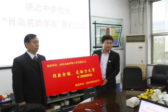 “人得常懷感恩之心,我現(xiàn)在所擁有的一切少不了母校的培育,什么時候也不能忘本!毙u把想回報母校的想法告訴了高中時候的班主任老師。在老師的支持下,肖島捐助20萬元,在濟北中學創(chuàng)立了“肖島獎助學金”。“這是我校有史以來第一個以校友名字命名的獎助學金項目,但絕不會是最后一個,相信會有更多的校友回到母校,回饋母校。”提起“肖島獎助學金”,濟北中學校長李連師不無激動。