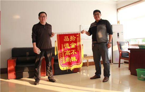 失主做了一個(gè)“品德高尚拾金不昧”的錦旗,找到了我們新甫辦事處,聯(lián)系了單位領(lǐng)導(dǎo),親手把這個(gè)帶著榮益的錦旗送到了李軍手里,感謝的話說(shuō)了夠一籮筐,只為表達(dá)那一種失而復(fù)得的激動(dòng)之情和遇見(jiàn)好人的幸運(yùn)之情,這時(shí)候李軍就露出那憨憨的笑容,托詞都不知道說(shuō)什么好,他覺(jué)得就是做了一件舉手之勞的事情,得到失主這樣的感謝反而有點(diǎn)承受不起。