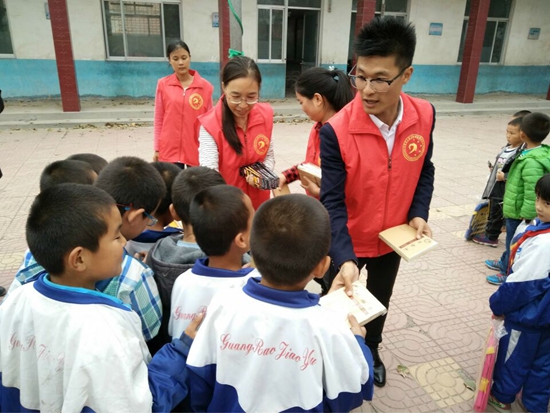 他熱心公益,服務(wù)群眾,奉獻(xiàn)社會,五年的時間里,堅持做志愿服務(wù),教盲童彈吉他,關(guān)注留守兒童,參與精準(zhǔn)扶貧……哪里需要志愿者,哪里就有他的身影。一天、兩天并不難,難的是持之以恒。他說“世界上還有這么多不幸的人需要我們幫助,星星之火可以燎原,我不追求安逸,就想力所能及地幫助別人!