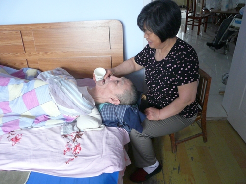 這樣日復(fù)一日,一直度過了26個春秋。長期的護理,安為香摸索出了一些“經(jīng)驗”:用紗布裹著手指,沾著鹽水一顆顆為丈夫刷牙,用榨汁機為丈夫做各種各樣的營養(yǎng)粥和中藥粥;在丈夫的腋窩、腿窩、胳膊肘都襯著棉布或者軟紙,用手絹隔開指縫,尿布勤洗勤換……在安為香的精心照顧下,丈夫的情況一直都保持穩(wěn)定,這也讓她感到自己的一切付出都是值得的。