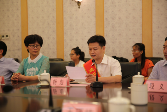2016年7月6日,楊彪在捐獻(xiàn)造血干細(xì)胞歡送會上發(fā)言。