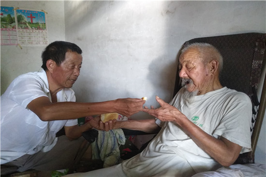 不是父子卻勝似父子,金鄉(xiāng)縣化雨鎮(zhèn)馮海村村民陳傳安八年如一日悉心照顧?quán)従庸鹿牙先说氖论E成為村里口口相傳的一段佳話。陳傳安和陳樂(lè)平是多年鄰居,2009年,陳樂(lè)平的兒子因車禍不幸喪生,為了生活,兩個(gè)孫子長(zhǎng)期在江蘇打工,時(shí)年90歲的陳樂(lè)平成了孤寡老人。作為一墻之隔的鄰居,陳傳安每當(dāng)看到這位善良孤苦的老人,就不禁想起自己的父親。他時(shí)不時(shí)地去老人家里坐坐,陪老人說(shuō)說(shuō)話。