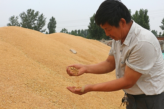 自從2013年注冊家庭農(nóng)場后,每年的7月份和12月份焦廣富都按照土地流轉(zhuǎn)協(xié)議書,盡快將土地流轉(zhuǎn)金交付給原土地承包者。由于資金及時(shí)交付,得到周邊群眾的大力支持,在土地流轉(zhuǎn)的第一年秋季,他又流轉(zhuǎn)了村民的800畝耕地,2015年秋收時(shí)又流轉(zhuǎn)了周邊村的360畝耕地,僅用了兩年的的時(shí)間,焦廣富便成為了擁有2360畝耕地的“大地主”,還被評為“全國種糧大戶”。2360畝耕地,每年的承包費(fèi)就貳佰多萬元,但焦廣富自己再苦再難從不拖欠。特別是2015年秋季,因洪澇災(zāi)害造成莊稼嚴(yán)重減產(chǎn),部分地塊失收,給他的生產(chǎn)經(jīng)營帶來嚴(yán)峻的挑戰(zhàn)。多數(shù)村民看到此景都說:“你今年困難,承包費(fèi)到下年再付吧”,可他還是堅(jiān)持把農(nóng)民的土地承包費(fèi)一分不少的按時(shí)付清。他說“承包費(fèi)是村民尤其是老齡村民的主要生活來源,我再困難,也不能拖欠大家,對于大家對我的理解與支持表示感謝,這也是對我的鞭策!