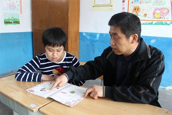 生活教育,他成為學生心中的好“爸爸”。工作上的劉老師就像一塊磚,哪里需要那里搬。近年來的招生以智障孩子為主,劉老師又擔任了一年級智障班的生活課教學。班上12名孩子,有的先天愚型,有的腦癱,還有的多重障礙。這些孩子,年齡小,自理能力差,有穿反鞋子、系錯紐扣的,還有大小便不能自理的,劉老師的教學遇到常人想象不到的困難。早上,他會最早來學校幫班里的每個孩子洗手、洗臉、刷牙、疊被子;課堂上,他會手把手地,十遍、百遍的教孩子的自理能力。他經(jīng)常把自己孩子的衣服拿來給貧困學生穿上。這些年,只是為不小心磕磕碰碰的學生用的紫藥水,劉老師就自己掏錢買了幾十瓶。在劉老師的抽屜里一直存放著一個個顏色不同的線轱轆,上面插著縫衣針,這是他親手為孩子們縫補衣服、鞋子、書包等用的,縫衣針和線轱轆也不知道換了多少個。劉老師關愛學生就像關愛自己的孩子一樣。某某強學生是一個多重殘疾的孩子,父母輕度智力障礙,全家靠70多歲的爺爺操持生計。去年冬天,劉老師見孩子的鞋子破得露出了腳趾,沒穿襪子的兩只小腳丫凍得通紅。他什么也沒說就到商場買了雙新棉鞋給他穿上。經(jīng)常遇到某某強同學的爺爺不能到校接孩子,劉老師就自己買車票送學生回家。坐車要走一百多里路,從車站下車還要步行十幾里的山路才能到家。在送學生回家的路上,劉老師的雙手被荊棘劃破了不知多少道血口,在上嶺和下嶺的時候也不知滑倒過多少次。一年、兩年、三年……,這樣的付出和堅持,孩子們有了驚人的變化:銘銘會自己洗衣服了,偉偉能洗刷碗筷了……,最終實至名歸,2016年9月,劉老師被縣教育局評為“優(yōu)秀教師爸爸”。