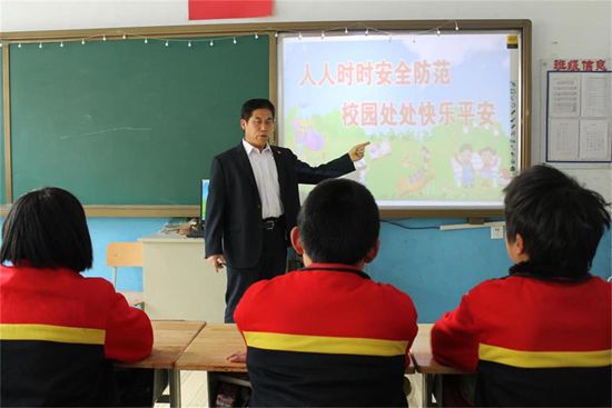 安全教育,他為學生撐起一道“保護傘”。除了職業(yè)課,劉老師還兼任學校的安全課!皩W生安全無小事”。怎樣培養(yǎng)這些殘疾孩子的安全意識,劉老師結合不同學生的年齡和心理特點,制定安全教育計劃,撰寫不同的教案,使學校的安全教育課更有多樣性和針對性。劉老師還創(chuàng)新課堂教學方法,注意聯(lián)系身邊的案例,采用多媒體、講故事、小游戲、實地參觀學習等形式,增強教育的趣味性和說服力。每次學生回家,水、火、電,還有食品安全、交通安全,劉老師都是千叮嚀、萬囑咐。自從設置了安全課,劉老師就成了學校的“義務巡查員”。課間學生打鬧的、操場學生活動的,劉老師都會制止一下,觀望一番。一次,他看到一些同學在打籃球,某某軍同學一不小心就要摔倒在花壇邊的條石上,劉老師眼急手快將學生擋在一邊。學生安然無恙,自己卻仰面摔倒。經(jīng)過檢查,劉老師后腦輕度震蕩,大腿、右肩及胳膊筋骨輕度損傷。醫(yī)生說也沒有好的治療辦法,只能慢慢恢復。直到現(xiàn)在,劉老師的損傷部位還會隱隱作痛。