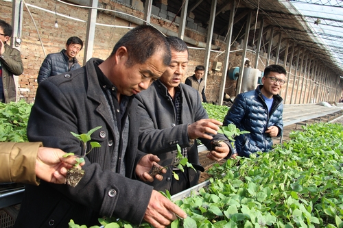 蔣文海是土生土長的農(nóng)家孩子,打小就喜歡和莊稼土地打交道,如今雖然走上了所謂的經(jīng)商之路,但依然不忘堅(jiān)守善良誠信的莊稼人本分。韓集鄉(xiāng)是一個(gè)農(nóng)業(yè)鄉(xiāng)鎮(zhèn),可是農(nóng)村只會下蠻力,文化知識較少,尤其是大棚種植戶剛開始接觸,對病蟲害的發(fā)生規(guī)律不了解,假冒偽劣農(nóng)資不能辨別,對管理技術(shù)還不掌握,許多作業(yè)帶有很大的盲目性,蔣文?丛谘劾锛痹谛纳,他每年都要組織果農(nóng)專業(yè)知識培訓(xùn),去年自己花費(fèi)4萬多元組織葡萄種植戶去四川學(xué)習(xí),今天又花費(fèi)2萬元帶領(lǐng)全鄉(xiāng)大棚種植戶去壽光參觀學(xué)習(xí),還自發(fā)給大家評比蔬菜水果種植大王,讓其他百姓學(xué)習(xí)借鑒先進(jìn)經(jīng)驗(yàn)。