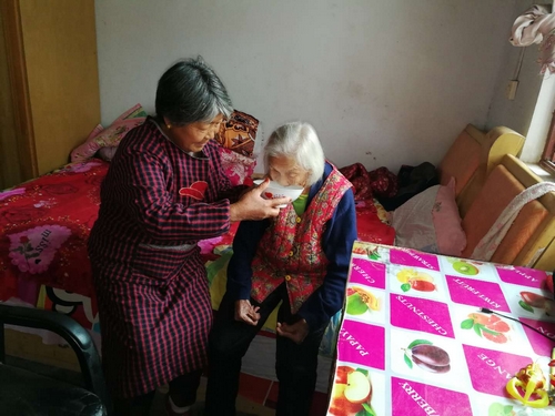 “老娘94歲了,兩眼都已失明,再加上雙手患震顫的毛病多年,就連吃飯也是靠喂。”每次做飯,岳煥成都會先詢問婆婆想吃什么,根據(jù)老人家的喜好做飯菜,盡量的合著老人口味。給婆婆喂飯時,先給婆婆帶上圍巾,還不時地給老人擦拭嘴角的飯屑。街坊鄰居都說岳煥成照顧婆婆比她照顧親娘都用心。