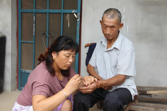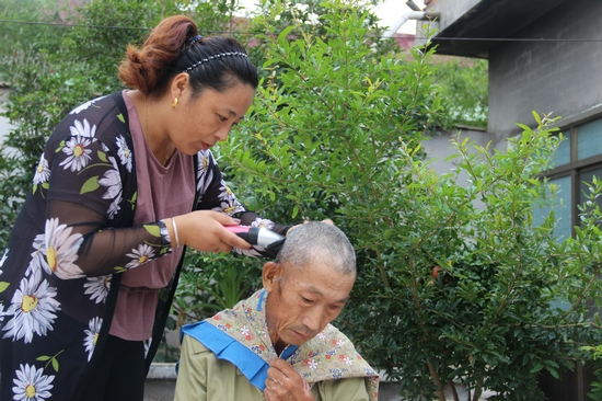 “誰(shuí)都有到老那一天?孝敬老人天經(jīng)地義,俺伺候公爹也算是盡到了做天下兒女應(yīng)盡的責(zé)任!睒銓(shí)的話語(yǔ)讓人們對(duì)李光萍增添幾分欽佩。李光萍常說,進(jìn)了曹門就是一家人,對(duì)公爹和婆婆好就是對(duì)丈夫和兒女好,李光萍在家里還是一個(gè)妯娌團(tuán)結(jié)和睦的好榜樣,照顧老人從不相互推脫,與弟媳婦掙著伺候公爹,也從不和小姑子講條件、分責(zé)任。“孩子他爸常年在外開車,很少有空照顧公爹,孩子兩個(gè)姑姑出嫁多年,又不能天天守在公爹身邊,俺多擔(dān)載點(diǎn)應(yīng)該!痹掚m不多,卻使得小姑子心里暖融融的。每次小姑子來看望公爹,她總是笑臉相迎,并讓小姑子多提建議。小姑子深受感動(dòng),逢人便說,像俺嫂子這樣的賢妻良母十里八鄉(xiāng)也難找。2015年初夏,公爹不小心讓開水燙了,傷口紅腫,有感染跡象,李光萍每天一大早就用三輪車推著公爹到附近診所掛吊瓶,公爹的身子又不靈便,端湯喂藥、洗洗漿漿全落在她一人身上,在李光萍的悉心護(hù)理下,曹永亮的燙傷很快痊愈!叭舨皇莾合眿D為俺清洗換藥這么勤,傷口早就化膿了,胳臂、腿多處燙傷好的這么快,靠的是光萍這孩子的精心護(hù)理!闭f到這里,年過六旬的曹永亮眼睛濕潤(rùn)了。
