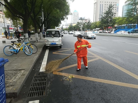 她記得要來環(huán)衛(wèi)局上班的時(shí)候,衛(wèi)生保潔隊(duì)隊(duì)長說過的一句話,就是“要做好一年365天不能歇的準(zhǔn)備才能干環(huán)衛(wèi)”,就是這一句話,開始了她酸甜苦辣的環(huán)衛(wèi)人生。她負(fù)責(zé)的這段路,人多、車多、廢棄物多,一天幾乎不能有任何閑暇時(shí)間。最苦最累的時(shí)候是夏天,大量的國槐花開過之后飄落到人行道板上,像一層薄薄的雪花,需要不停地來來回回清掃,如果不及時(shí)清掃,路人將國槐花踩碎后就將人行道板污染。