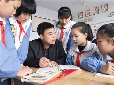 張在洋細心輔導(dǎo)學(xué)生學(xué)習(xí)