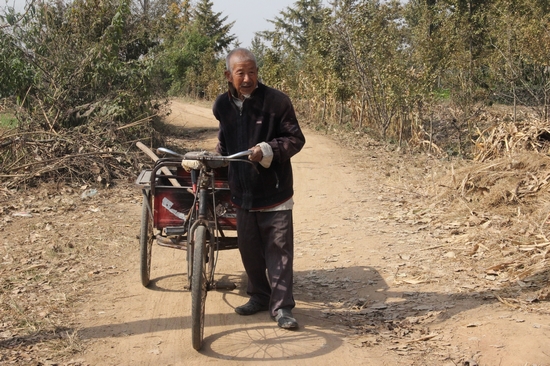 哪里有不用的石頭、磚塊和泥土,謝春鶴就趕緊推著三輪車去拉,看到路上坑洼的地方,就先用石頭、磚塊一點點墊起,再用鐵鍬覆上泥土拍平夯實。一天又一天,一段段坑洼顛簸的路就這樣逐漸平整順暢了起來。六年來,謝春鶴老人光鐵鍬就用壞了三把,新買的腳蹬三輪車也是修了一回又一回。
