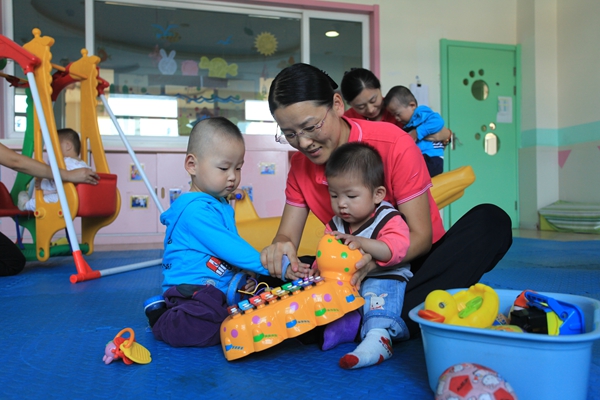 小楊是一名新入職的工作人員,面對(duì)新的工作環(huán)境,面對(duì)活動(dòng)室里20多名各類(lèi)殘疾的嬰幼兒,初來(lái)乍到的她顯得茫然無(wú)措。為此,董媛媛單獨(dú)找小楊談心,告訴她為孤殘兒童服務(wù)是一項(xiàng)光榮偉大的事業(yè)。同時(shí),也將自己多年來(lái)積累的工作經(jīng)驗(yàn)和技能毫無(wú)保留的教給她,很快使小楊融入到了工作中,擺脫了剛?cè)肼毜睦Ь场H缃,小楊也成為了康教中心的一名技術(shù)能手。