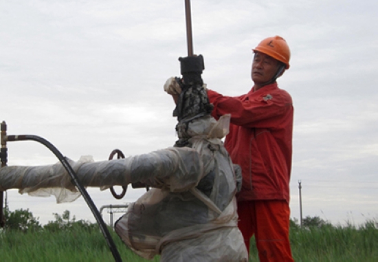 楊擝法在堅固抽油機(jī)井口