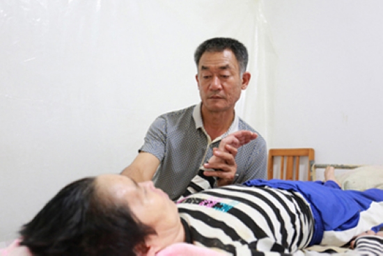 楊明法愁心照顧妻子,按摩