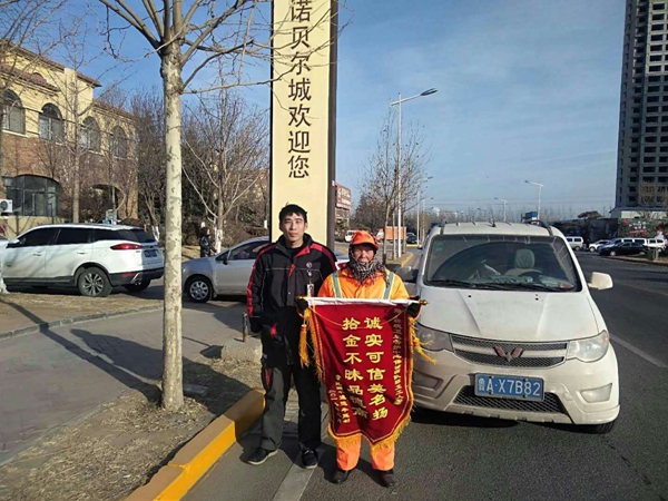 2018年2月3日下午,趙海芹像往常一樣進(jìn)行路面保潔作業(yè),當(dāng)作業(yè)至諾貝爾城一號(hào)門(mén)附近的時(shí)候,發(fā)現(xiàn)一個(gè)黑色東西,遠(yuǎn)遠(yuǎn)的看像是一個(gè)鼓鼓的塑料袋。趙海芹介紹說(shuō):“本以為是垃圾,走近了看才發(fā)現(xiàn)是個(gè)包,當(dāng)時(shí)我撿到的時(shí)候,身邊還有一位老大哥,我讓他給我做個(gè)見(jiàn)證,也幫我一起想辦法找到失主!壁w海芹打開(kāi)錢(qián)包看到很多錢(qián),沒(méi)有數(shù),更沒(méi)想到去數(shù),因?yàn)樗龔膩?lái)沒(méi)有拿過(guò)那么多的現(xiàn)金,面對(duì)突如其來(lái)的“巨款”,她懵住了。不過(guò),她很快便反應(yīng)過(guò)來(lái),既沒(méi)有占為己有的想法,也沒(méi)有為“巨款”心動(dòng),而是一門(mén)心思的想著把錢(qián)歸還給失主。趙海芹說(shuō):“當(dāng)時(shí)心里很緊張,那么多的錢(qián)手里拿著不放心,失主肯定也很著急,大過(guò)年的,咱得讓人家過(guò)好年不是。”為此,趙海芹站在原地等了近半個(gè)小時(shí)時(shí)間,終于等來(lái)了失主。
