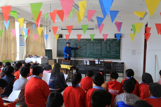 焦老師來了以后,很快便成為了祥斌中學(xué)孩子們最為期待的大朋友,一個(gè)個(gè)孩子猶如久旱的樹苗得到滋潤(rùn),一到音樂課,大家都像過節(jié)一樣興奮;課程一結(jié)束,學(xué)生又都不舍得離去,“他就像我們的爺爺,有一種很親切的感覺,因?yàn)橛薪估蠋熞魳氛n,我覺得上學(xué)變的很有趣!焙⒆觽冮_心的告訴我。