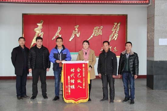 落水司機蔣女士給吳宇濤(左三)送來錦旗