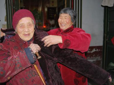 種道花的婆婆一提起家人的照顧就非常開(kāi)心地說(shuō),“三個(gè)兒子、七個(gè)孫子、一個(gè)閨女、六個(gè)重孫,都像俺兒媳婦那樣對(duì)我很好,都孝順!边@時(shí)站在一旁的種道花看著婆婆一臉的笑容高興地說(shuō),“我婆婆的心態(tài)很平和,滿足感很強(qiáng),這也是她高齡的秘訣!
