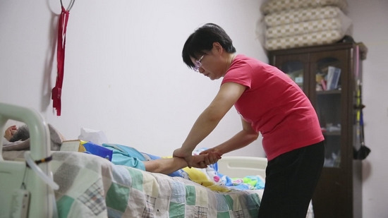 親情是人最原始的情感,最基本的美德。孝順不是轟轟烈烈做給別人看的,而是滲透到生活中的點(diǎn)點(diǎn)滴滴。郎合珍組建了自己的小家庭后,夫妻和睦,孝順公婆,是公認(rèn)的好媳婦!坝H有疾,晝夜侍,不離床”。2013年一場(chǎng)意外的醫(yī)療事故,婆婆陷入重度昏迷成了植物人,老人躺在床上不能動(dòng)彈,大小便失禁,意識(shí)不清。在婆婆病情最嚴(yán)重的那段日子里,郎合珍與家人各地輾轉(zhuǎn)尋醫(yī)求治,老人終究沒有恢復(fù),她也瘦脫了形。為了照顧婆婆,她學(xué)會(huì)了很多專業(yè)護(hù)理技能。每兩、三個(gè)小時(shí)就翻身、拍背、按摩四肢,護(hù)理氣管切口,刷牙、洗臉,清理便溺、換洗尿布、床單被褥,這對(duì)于郎合珍而言不過是四年來再平常不過的事了。一天幾頓飯,婆婆只能吃流食,她就學(xué)習(xí)營養(yǎng)搭配,悉心將水果、米粥、瘦肉壓成汁,用紗布過濾后裝進(jìn)注射器,一點(diǎn)點(diǎn)打進(jìn)胃管里,維持著老人的生命。每天郎合珍都會(huì)為婆婆擦拭身體,照料婆婆無微不至。老人不能自主呼吸,氣管切開后痰特別多,晚上她與丈夫輪流值班,時(shí)時(shí)警醒著幫助老人吸痰。“對(duì)我和丈夫來說,媽媽就是一種精神寄托。只要她在一天,就盡一天孝!彼龝r(shí)常這樣說。家庭是什么,是人世間最可信賴的社會(huì)細(xì)胞。四年多來,1500多個(gè)日日夜夜,郎合珍意志沒有垮、孝心沒有變、責(zé)任沒有失,也喚醒了許多人在這紛雜時(shí)代中對(duì)內(nèi)心情感最深處的拷問。這種中華民族樸素而真摯的人性之美,可以作為社會(huì)的良藥。郎合珍付出的孝心,不僅撫慰了丈夫、親人,也感動(dòng)著每一位知悉情況的鄰里、朋友、同事。