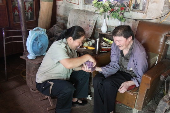 唐風(fēng)琴的公公患有偏癱40余年,日常生活起居必須有人全程照顧;其婆婆年老并且身體患有高血壓等多種疾病,也需要照顧;她丈夫忙于工作,早出晚歸,無暇顧家;這一切導(dǎo)致了照顧兩位老人,尤其是公公的重?fù)?dān)就落在唐風(fēng)琴身上。未到郵政參加工作之前,唐風(fēng)琴除了日常農(nóng)忙時(shí)間外,都一直陪伴在兩位老人身邊,不管何時(shí),總是隨叫隨到。參加工作以后,唐風(fēng)琴每天早晨不到6點(diǎn)就起床,為兩位老人準(zhǔn)備早飯,協(xié)助公公起床洗漱,照顧公公吃完早飯后自己才匆匆吃一點(diǎn),確保8點(diǎn)之前到達(dá)營業(yè)網(wǎng)點(diǎn)上班;中午12點(diǎn)下班后,匆忙趕回家,準(zhǔn)備午飯、照顧公公吃飯;晚上下班后趕緊回家做晚飯;等全家吃完晚飯,她才有時(shí)間洗全家的衣服;她晚上10點(diǎn)之前從未睡覺過;每日如此,從未間斷。因?yàn)楣脒吷頉]有知覺,所以她還經(jīng)常性幫助公公活動筋骨,揉揉麻木的身體。也正是因?yàn)楣脒吷眢w沒有知覺,有一次,腿離暖爐太近,導(dǎo)致被燙紅,唐風(fēng)琴在給公公按摩時(shí)才發(fā)現(xiàn),在給公公上藥的時(shí)候,邊流淚邊自責(zé),覺得是自己照顧不周才導(dǎo)致燙傷,并為此愧疚很長時(shí)間。從那以后,雖然她離家上班,但總是電話提醒婆婆多留心,避免此類問題的再次發(fā)生。也正是唐風(fēng)琴如此用心,其公公再未出現(xiàn)類似情況。
