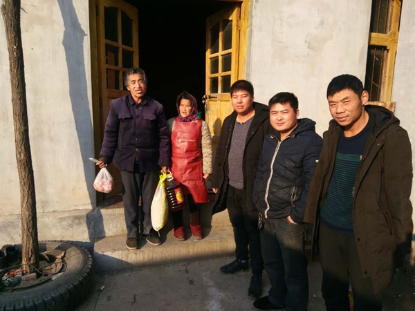 2018年春節(jié)蔡高利和村上的兩位愛(ài)心人士一起湊了幾千元,買(mǎi)來(lái)米、油、肉餡對(duì)村里的貧困戶(hù)、殘疾人、孤寡老人等困難群體進(jìn)行走訪慰問(wèn),讓他們過(guò)好年。