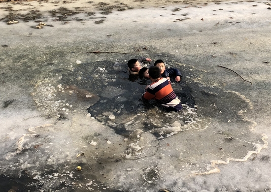 原來,當(dāng)天一共4個男孩在塘壩邊玩耍,兩個12歲的孩子和一對8歲的雙胞胎。孩子們看到塘壩里水面結(jié)冰了,便走上冰面玩耍,但冰層中間位置冰層太薄,一個孩子不小心掉入了水中,另外兩個孩子跑上前施救,沒想到也跟著掉進(jìn)了水里,岸邊的孩子看到這一幕后趕緊大聲呼救。值得慶幸的是,牛恩利聽到了孩子的呼救聲并及時趕來將孩子們救了出來。