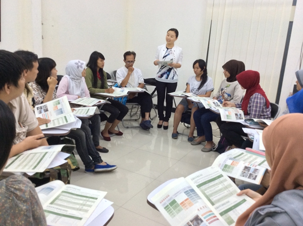 她每天給本土教師11個(gè)課時(shí)的高強(qiáng)度培訓(xùn),她上課時(shí)張弛有度,注意理論與實(shí)踐相結(jié)合,學(xué)員們受益匪淺并順利通過(guò)了由教育部實(shí)施的教師資格考試。2014年3月,泗水孔院承辦了漢辦《當(dāng)代中文》印尼語(yǔ)版(中、高級(jí))的教材編譯項(xiàng)目,宋麗麗擔(dān)任該項(xiàng)目組組長(zhǎng),統(tǒng)籌改編、翻譯、校對(duì)事務(wù),與孔院志愿者們一起把教材改編為符合印尼風(fēng)俗習(xí)慣、適合印尼學(xué)生用書需求的內(nèi)容,目前教材已由華為教育出版社出版發(fā)行。