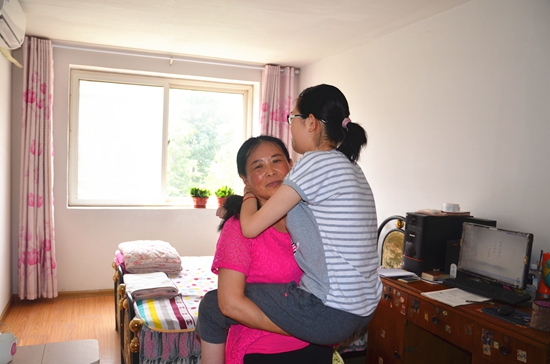 小東曉行動不便,但是劉淑玲希望她能夠像其他孩子一樣去上學(xué),剛上學(xué)時,小東曉還能在媽媽的幫助下自己走路?墒侨昙壍臅r候,一次不慎摔倒,小東曉從此就再也沒能站起來。劉淑玲便每天抱著女兒去學(xué)校,不管刮風(fēng)下雨,還是酷暑炎熱,不管是從小學(xué)、初中還是高中,劉淑玲從未讓女兒遲到過一次。然而,隨著女兒越長越大,劉淑玲抱起來就越來越吃力,一天下來渾身疼痛,頸椎和腰椎上的毛病也接踵而至!爸灰夷茏咭惶,我就抱她一天”,劉淑玲說。只因為她想讓自己的孩子和正常的孩子一樣受教育,能夠有自己的理想,成為一個對社會有用的人。