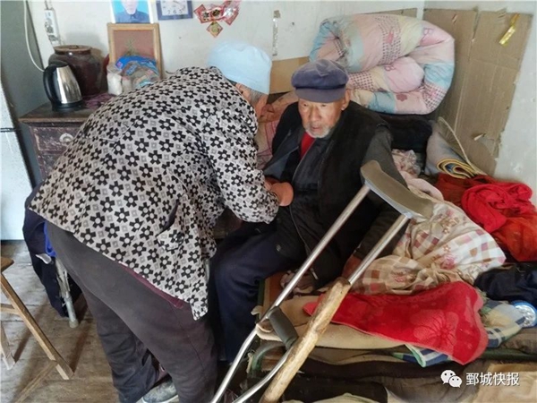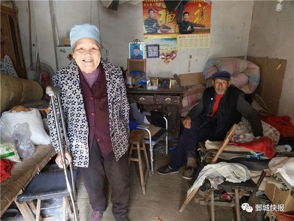 今年已經(jīng)70歲的李玉真,因股骨頭壞死做過手術(shù),走到哪里都要拄著拐杖。本該是頤享天年的年紀(jì),卻依舊拖著病殘的雙腿照顧年邁的公公。