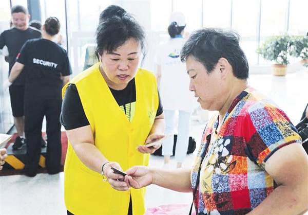 王麗敏(左)為乘客提供咨詢服務(wù)