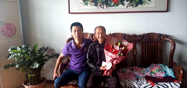 一束鮮花、慰問金,韓巍將溫暖送到老人手中。