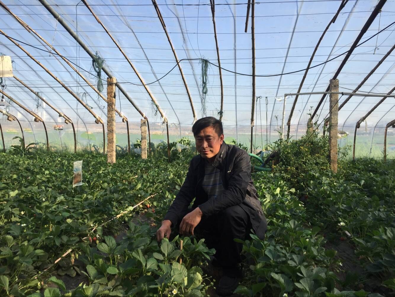 通過(guò)和實(shí)驗(yàn)大棚對(duì)比,單個(gè)無(wú)公害大棚的草莓產(chǎn)出量比傳統(tǒng)大棚產(chǎn)出量多1000余斤,種植第一年單棚年產(chǎn)就能達(dá)到5000多斤,而且口感更好。像這樣的無(wú)公害大棚,劉大鵬在清口澗村已經(jīng)建了18個(gè),2017年準(zhǔn)備規(guī)劃在北江村再建10個(gè)。“我做這個(gè)就是憑良心,為的就是讓咱們?nèi)樯饺艘材艹陨稀銡埩簟姆判牟葺,我?huì)堅(jiān)持這個(gè)理念一直做下去的!”劉大鵬堅(jiān)定地說(shuō)。