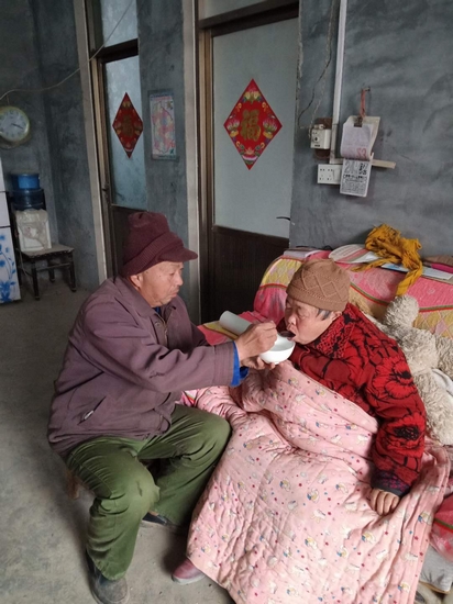 他堅(jiān)持每?jī)尚r(shí)給妻子翻一次身,一天三次給妻子擦洗身體,多年來(lái),孔秀菊從沒(méi)生過(guò)褥瘡;