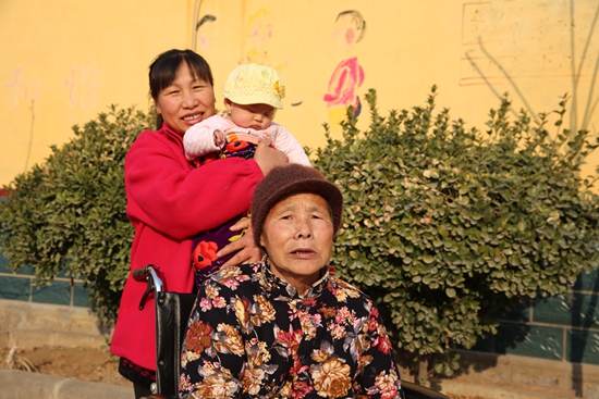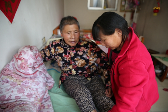 王雪花的一天通常這樣度過的:清晨,起床做好飯,給婆婆洗臉穿衣后再給婆婆喂飯。將婆婆的一切都打理妥當后,再將婆婆抱到椅子上推到客廳或者院子里曬曬太陽、呼吸下新鮮空氣。而這時,她才有時間來照顧小女兒和料理家務。“都說老小孩老小孩,婆婆生病后很依賴我,孩子還小好看顧,所以事事先緊著婆婆來!痹谶@簡單的話語中卻能看出王雪花的一片孝心。