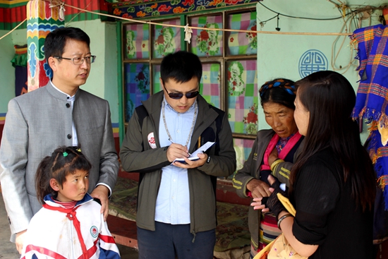 徐杰在西藏日喀則偏遠(yuǎn)農(nóng)村貧困兒童家里調(diào)查捐助