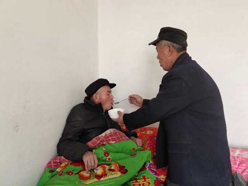 俗話(huà)說(shuō):長(zhǎng)兄如父。父親走了,曹寶慶為了照顧弟弟又當(dāng)?shù)之?dāng)媽?zhuān)裾疹欁约旱暮⒆右粯诱疹欀艿艿娜粘I。一日三餐由曹寶慶精心為弟弟料理,四季的衣服按時(shí)為弟弟換上。白天忙完地里的農(nóng)活晚上幫弟弟把臟衣服洗干凈涼好,等弟弟吃罷飯睡下了他才輕輕地帶上門(mén)回到自己家中。他本打算把弟弟接到自己家中照顧,這樣能更方便些,可弟弟只愿意待在他熟悉的老房子里。無(wú)奈也只能由著弟弟,曹寶慶只能一天三趟穿梭在自己家和弟弟家之間。曹寶慶說(shuō):農(nóng)閑時(shí)也倒沒(méi)什么,就是耽誤點(diǎn)時(shí)間而已,尤其是農(nóng)忙的時(shí)候就有點(diǎn)跑不過(guò)來(lái)了,但是我不過(guò)來(lái),弟弟就吃不上熱飯,他看不到我心里也不踏實(shí)。我只能堅(jiān)持。既然弟弟愿意待在父親留下的老房子里,曹寶慶就盡自己所能把這所老房子重新修葺了一番,讓弟弟能夠更舒適的住在這里。
