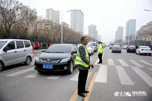 于法在部隊當兵時曾兩次榮立三等功,成為連隊里的佳話;他轉(zhuǎn)業(yè)工作期間榮獲“新長征突擊手”榮譽;退休后的他,秉持黨員本性,初心不改,始終堅守在愛心護學的第一線,日復一日,年復一年的守護著孩子們的平安路。自2010年莒縣第五實驗小學成立愛心護學崗以來,為了保證學生上下學安全,于法開始了義務護送學生,從此,這條護學路上九載寒暑,風雨無阻,每天4次在學生上學、放學的路口執(zhí)勤,指揮車輛,護送學生安全過路。
